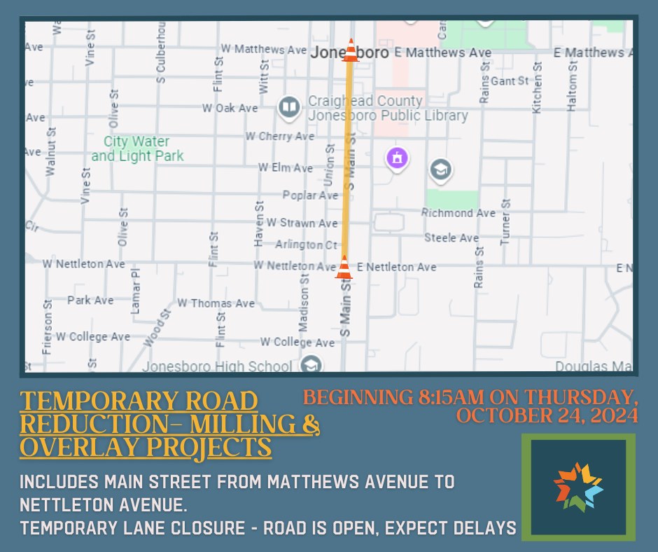 Parts of Main Street will have a temporary lane closure beginning at 8:15 a.m. on Thursday.