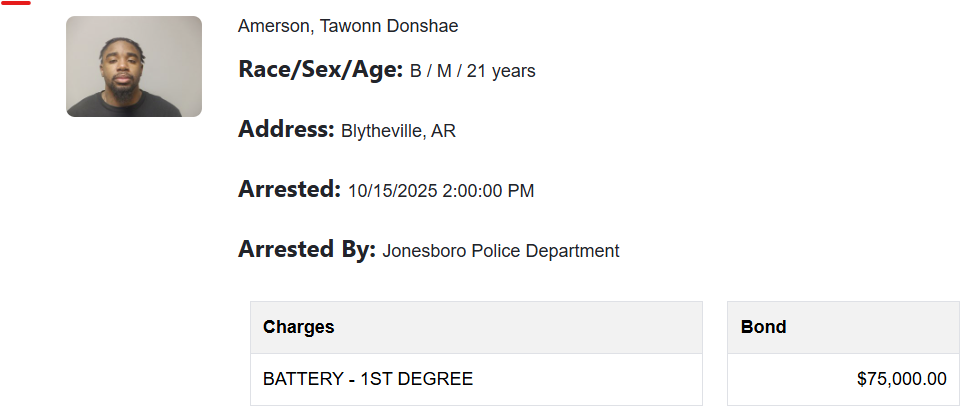 District Judge Tommy Fowler found probable cause on Oct. 17 to charge 21-year-old Tawonn Donshae Amerson, of Steele, MO, 21-year-old Mark Jones, and 19-year-old Mataiya Sky Phillips, each with first-degree battery. They were all arrested as a result of an investigation into a downtown Jonesboro fight that occurred Oct. 5.