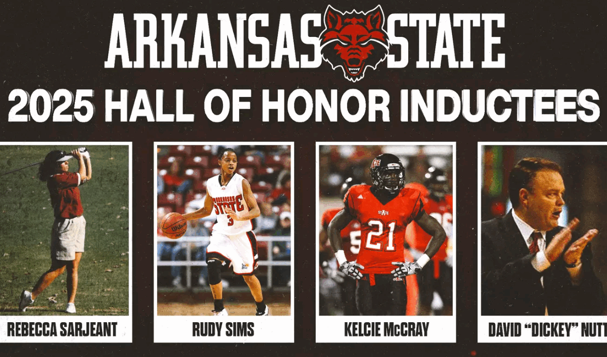 Jonesboro, AR – (Contributed) – Aug. 8, 2025 – The Arkansas State Letterwinners Club will induct four new members into A-State’s Hall of Honor during its 45th annual banquet in October.