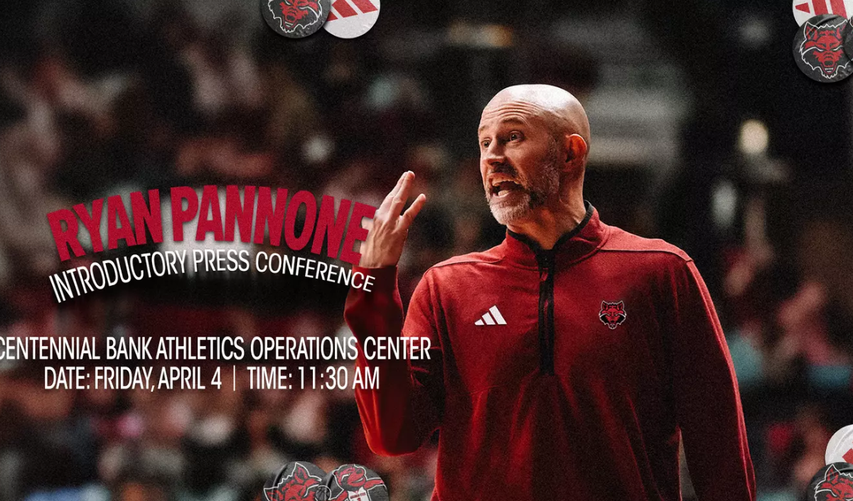 Jonesboro, AR — (Contributed) — April 1, 2025 — New Arkansas State men’s basketball head coach Ryan Pannone will be formally introduced Friday, April 4, as the 18th head coach in program history during an 11:30 a.m. press conference at the Centennial Bank Athletics Operations Center.