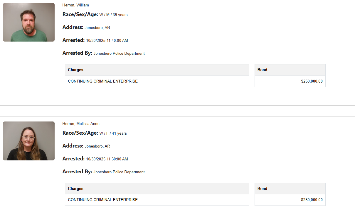Police said the new business operates in the same building that a sign for All-Star used to be on, and a search warrant revealed almost exclusive records for All-Star in the building, saying that a different person would take over for them in Arkansas in a new location. Police also called the Herrons’ business partner in Atlanta, confirming the two had actually planned to move there and help him grow All-Star with multiple locations in that area.