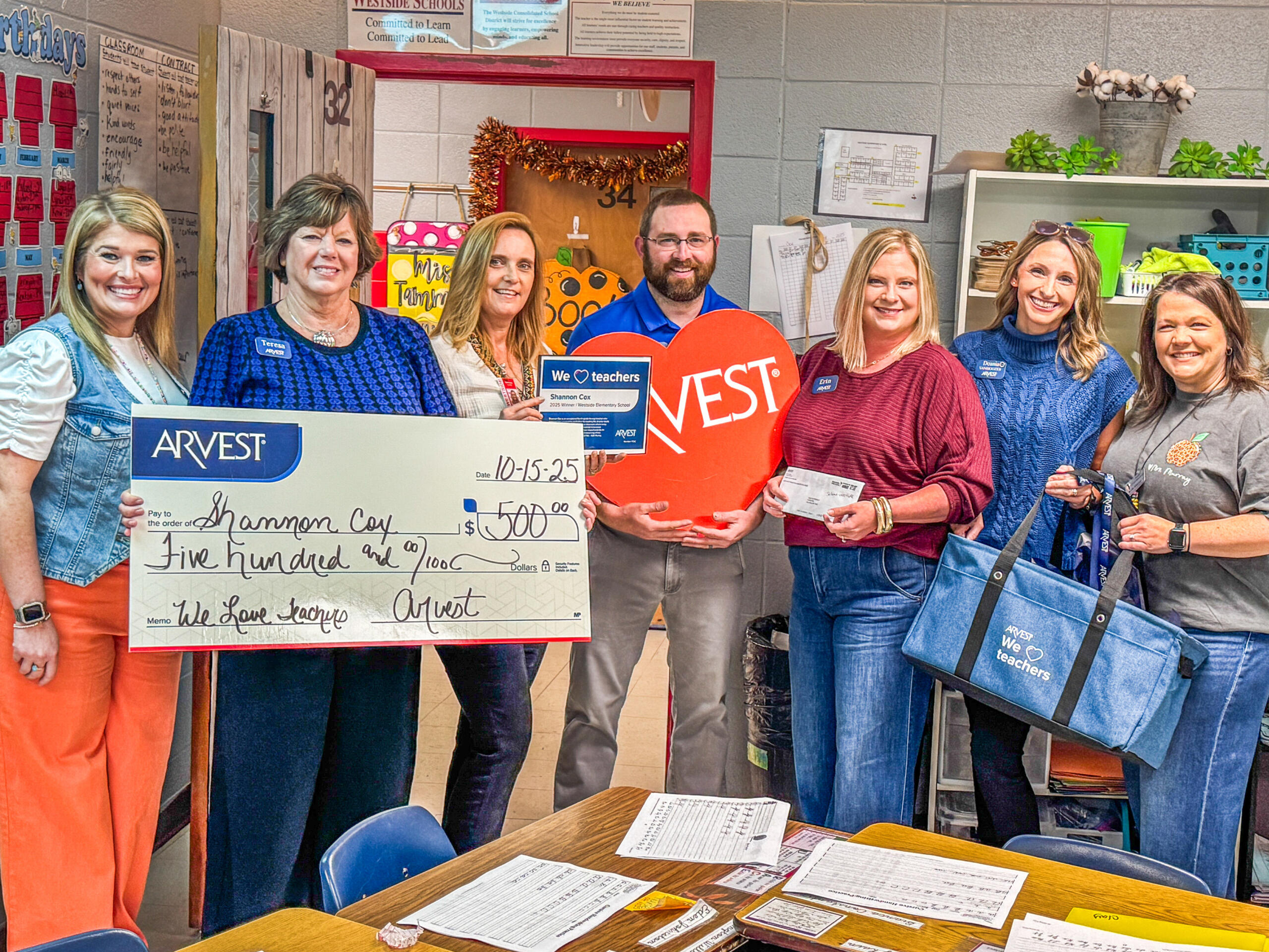 Now in its 10th year, Arvest has donated $608,000 to local teachers throughout Arkansas, Oklahoma, Missouri and Kansas.