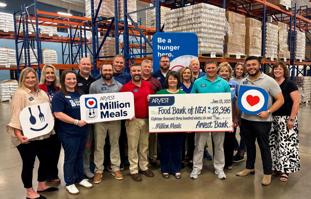 Jonesboro, AR — (Contributed) — June 18, 2025 — Arvest announced that the bank’s 15th annual Million Meals campaign raised $18,396 to benefit the Food Bank of Northeast Arkansas.