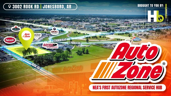 Jonesboro, AR – (JonesboroRightNow.com) – Nov. 6, 2024 – Haag Brown is thrilled to announce that AutoZone is bringing a massive 20,000 square ft. regional hub to the entrance of Jonesboro’s Auto Row on S. Stadium Boulevard.