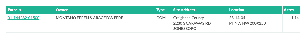 Craighead County real estate records indicated the 1.14-acre property at 2230 South Caraway Road was purchased by Efren and Aracely Montano/Efren Victor Montano.