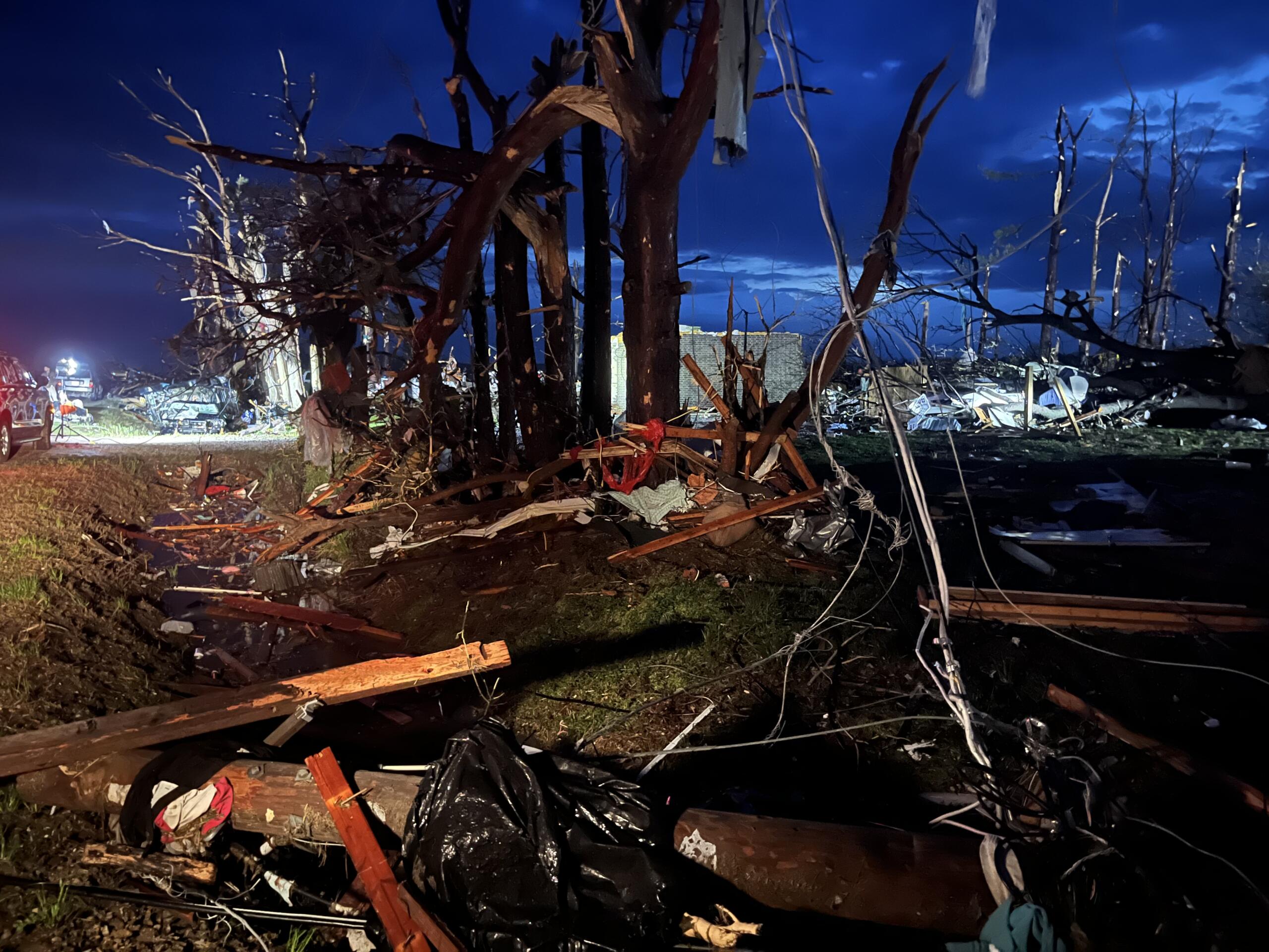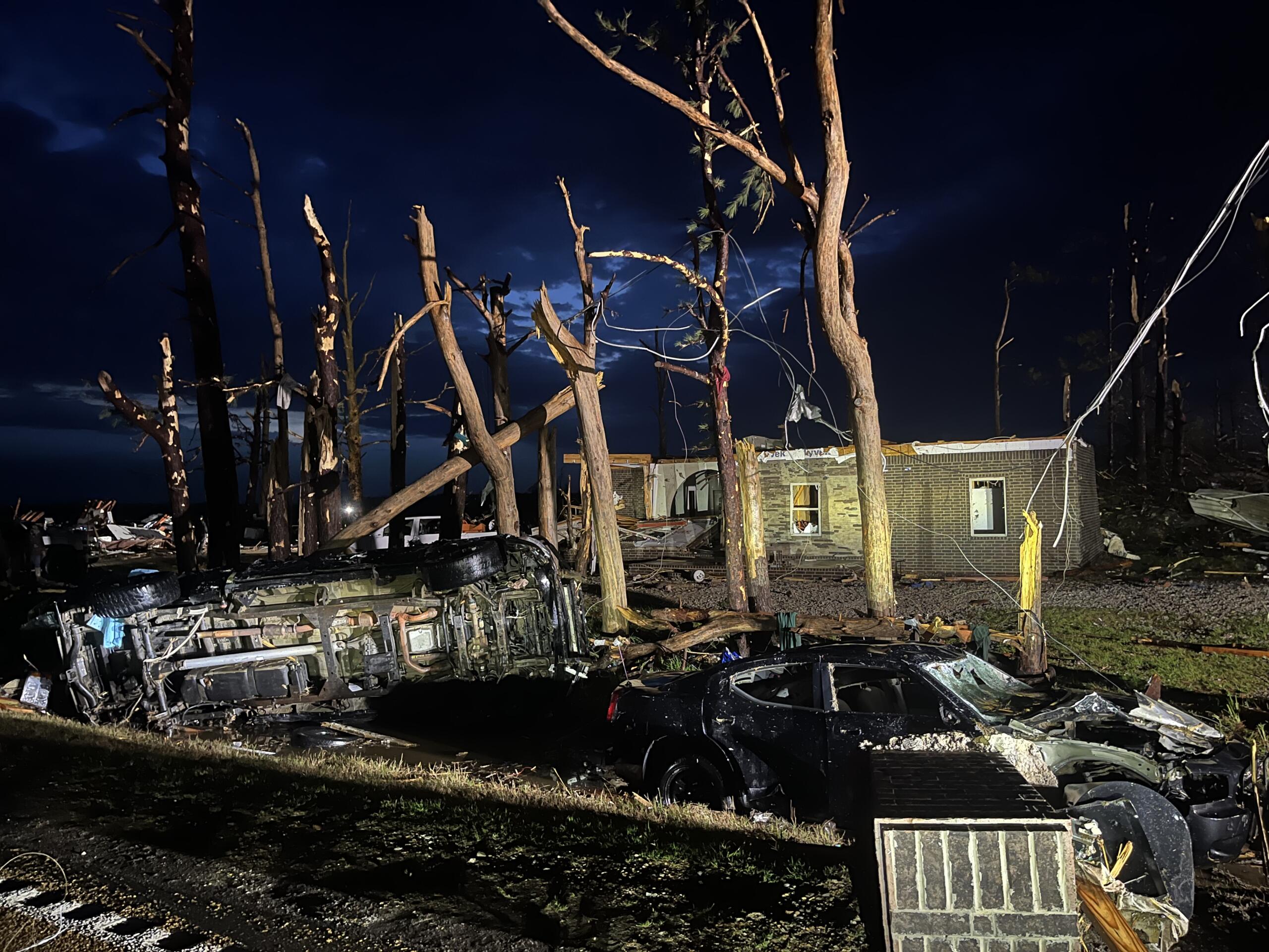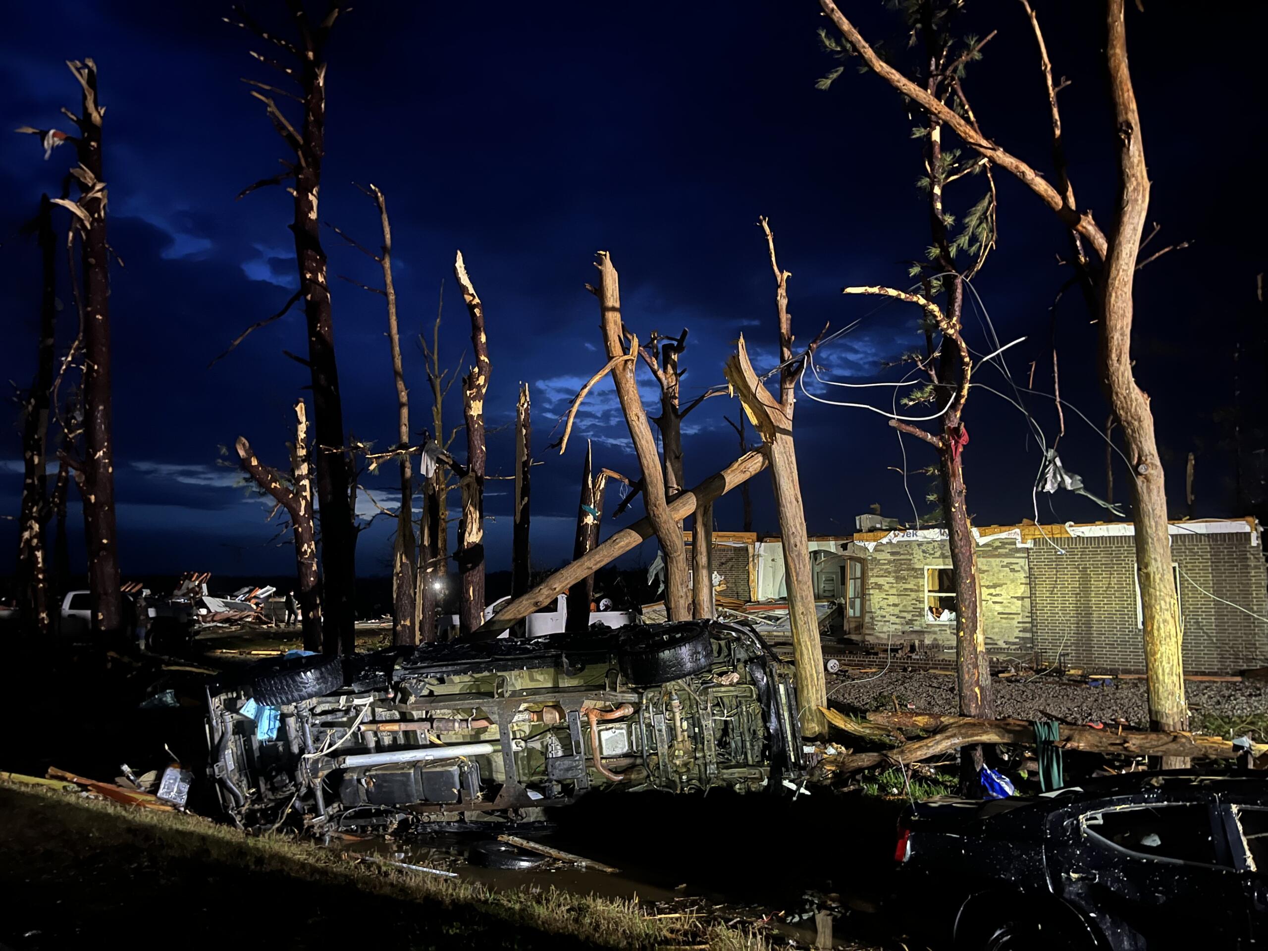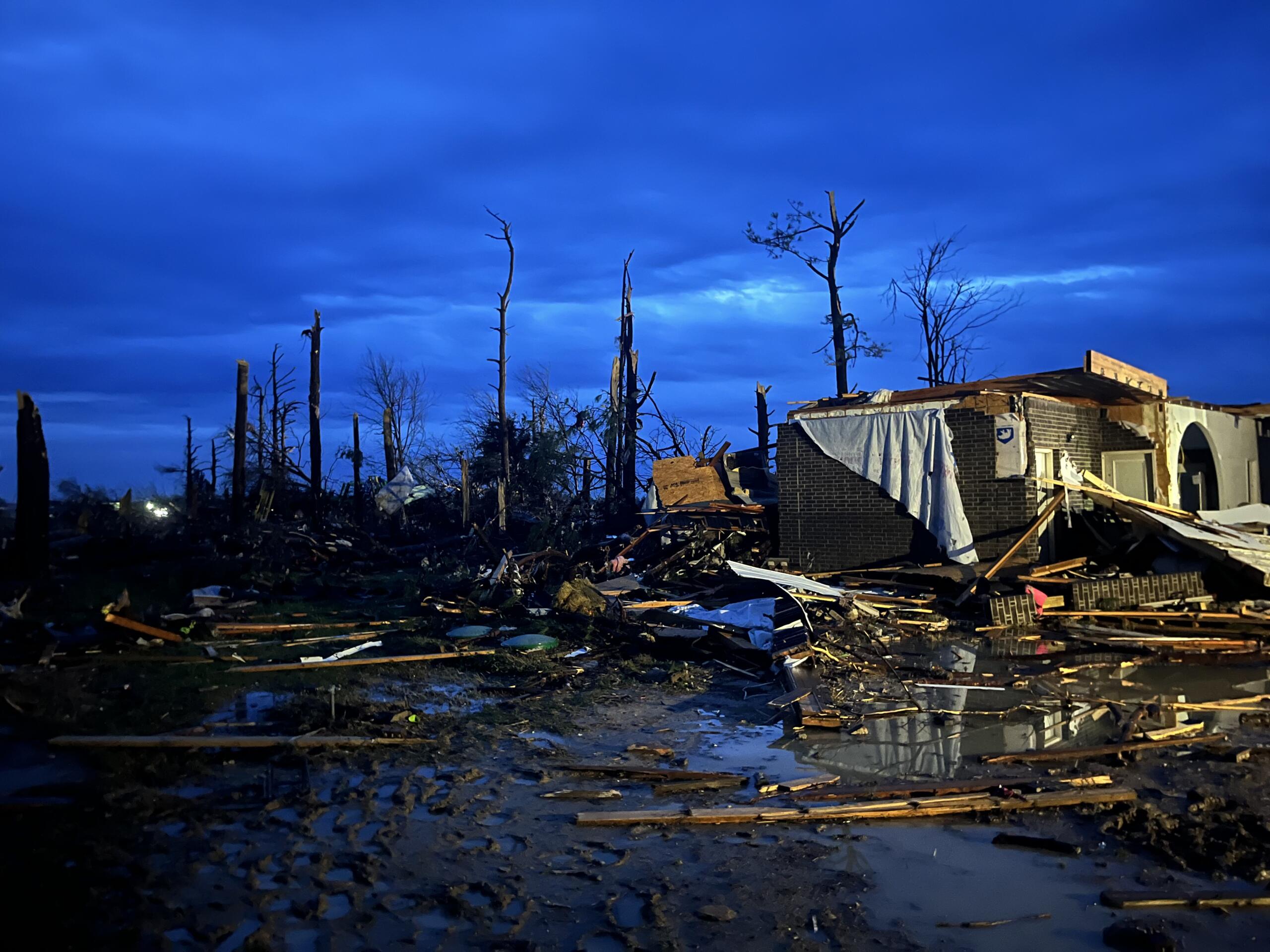 Tate said crews would work “between the rains” as the city works to restore power and rebuild with heavy rain in the forecast for the next few days. In addition, the city has been placed under a boil order until further notice and has a curfew in place lasting from 9 p.m. to 6 p.m.