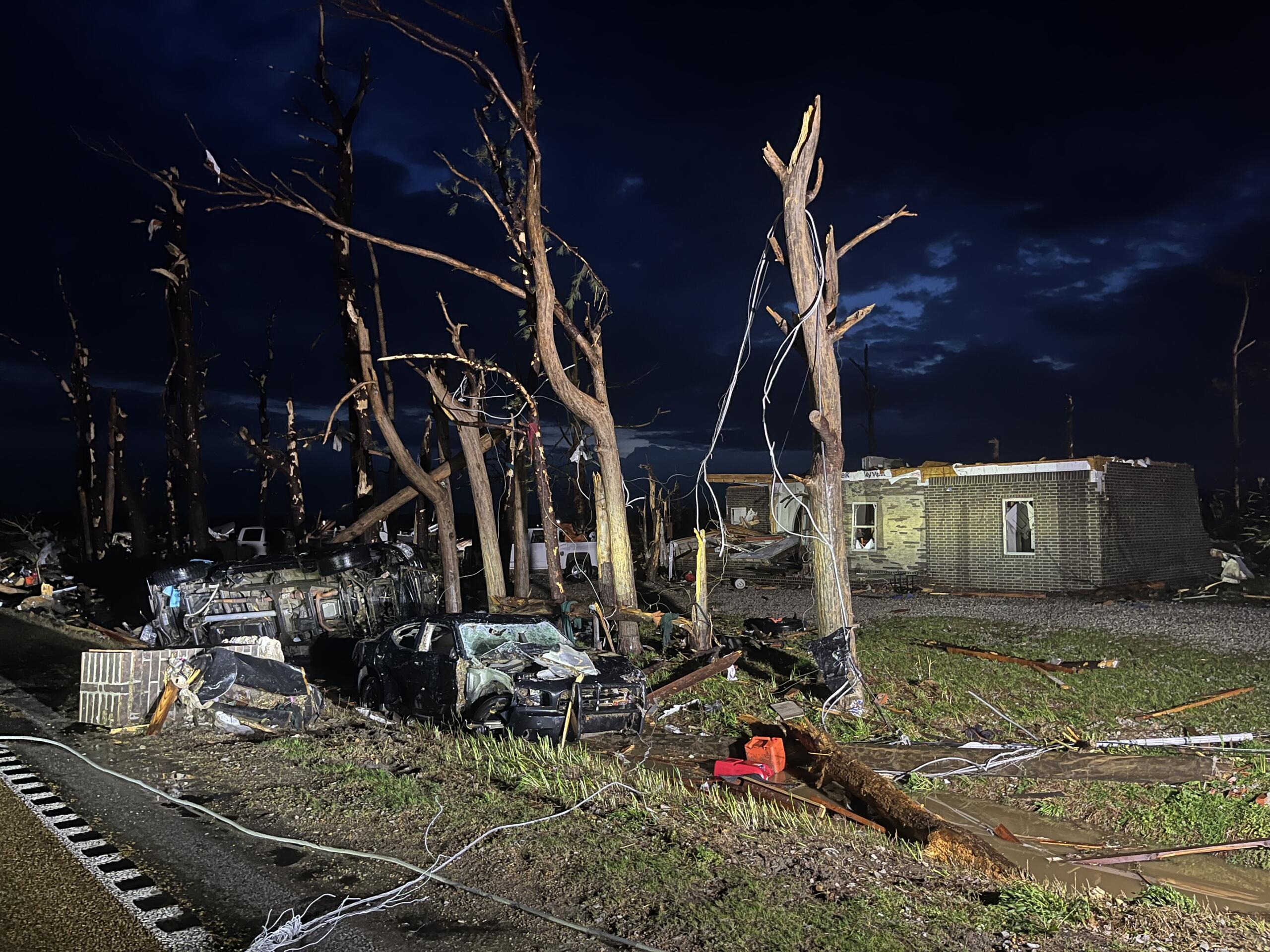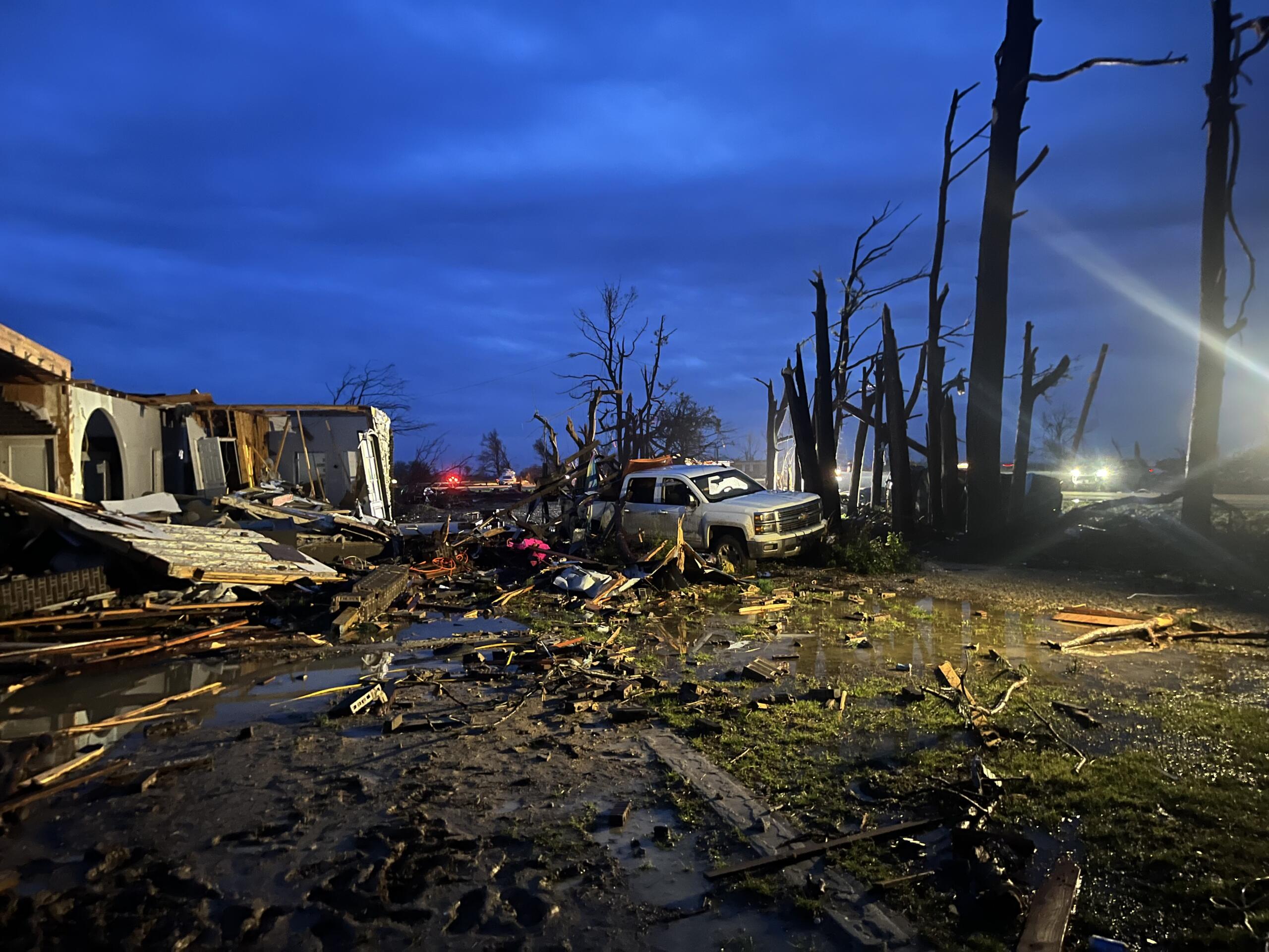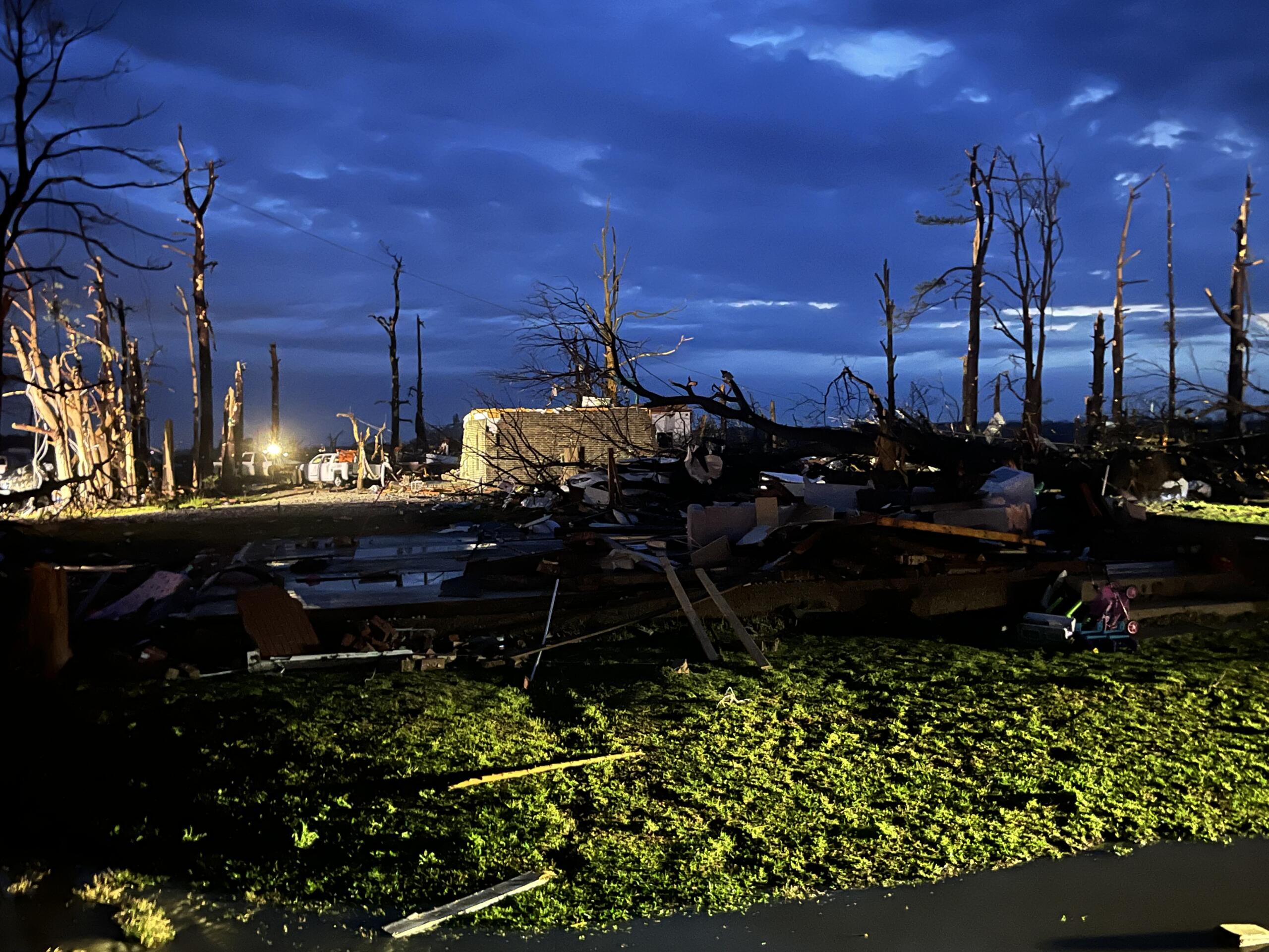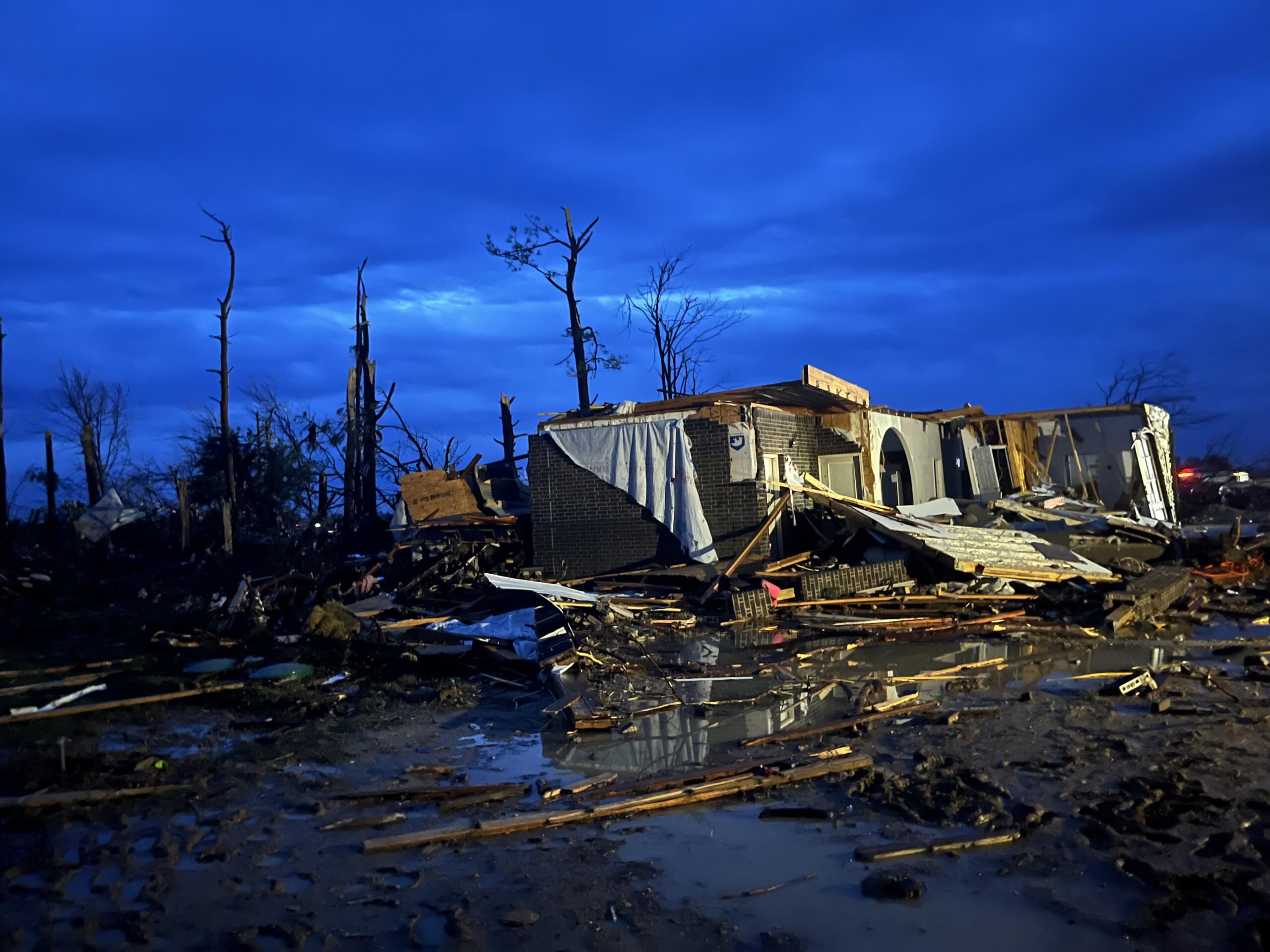 Monette Mayor Bob Blankenship said the city experienced lots of structural damage and around seven homes were destroyed. The tornado entered Monette on Highway 18 and hit residential areas, as well as buildings such as First Baptist Church, Gregg Funeral Home and more.