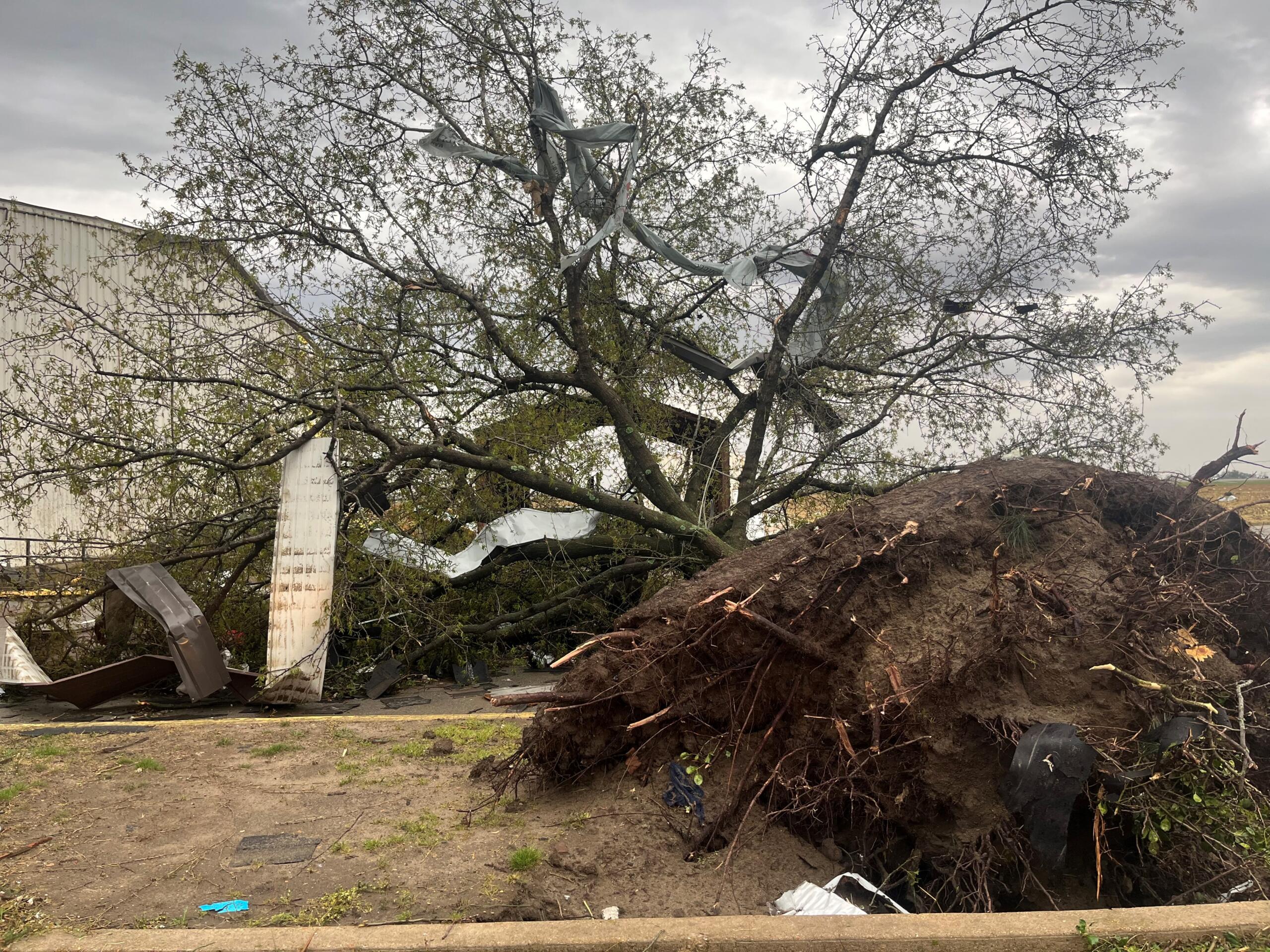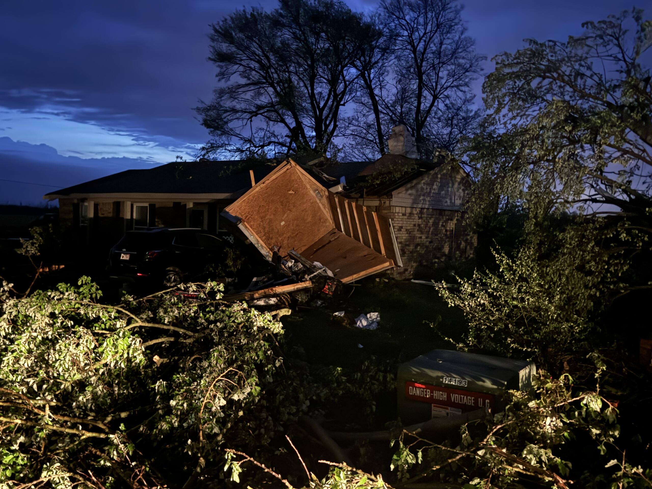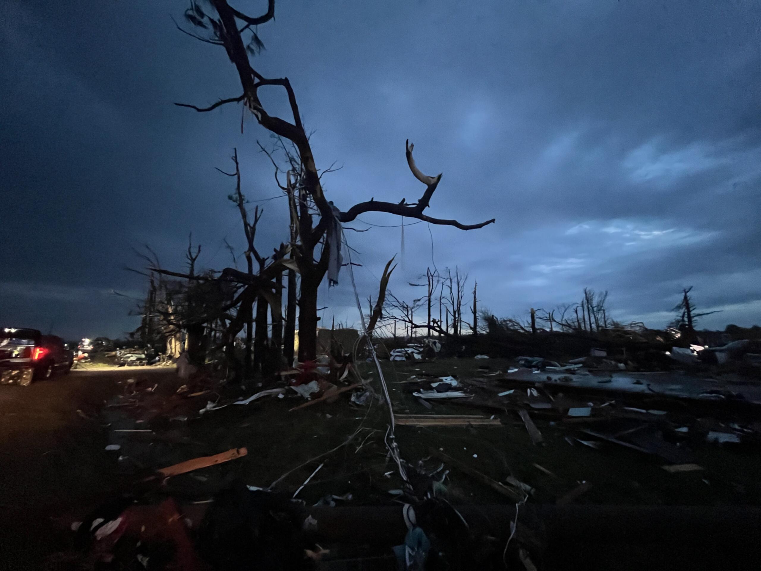 “It was pretty intense. It was loud. That storm shelter, they don’t have a door on it, so we had all kinds of debris and stuff flying in there on us, but it was loud,” Ferguson said.