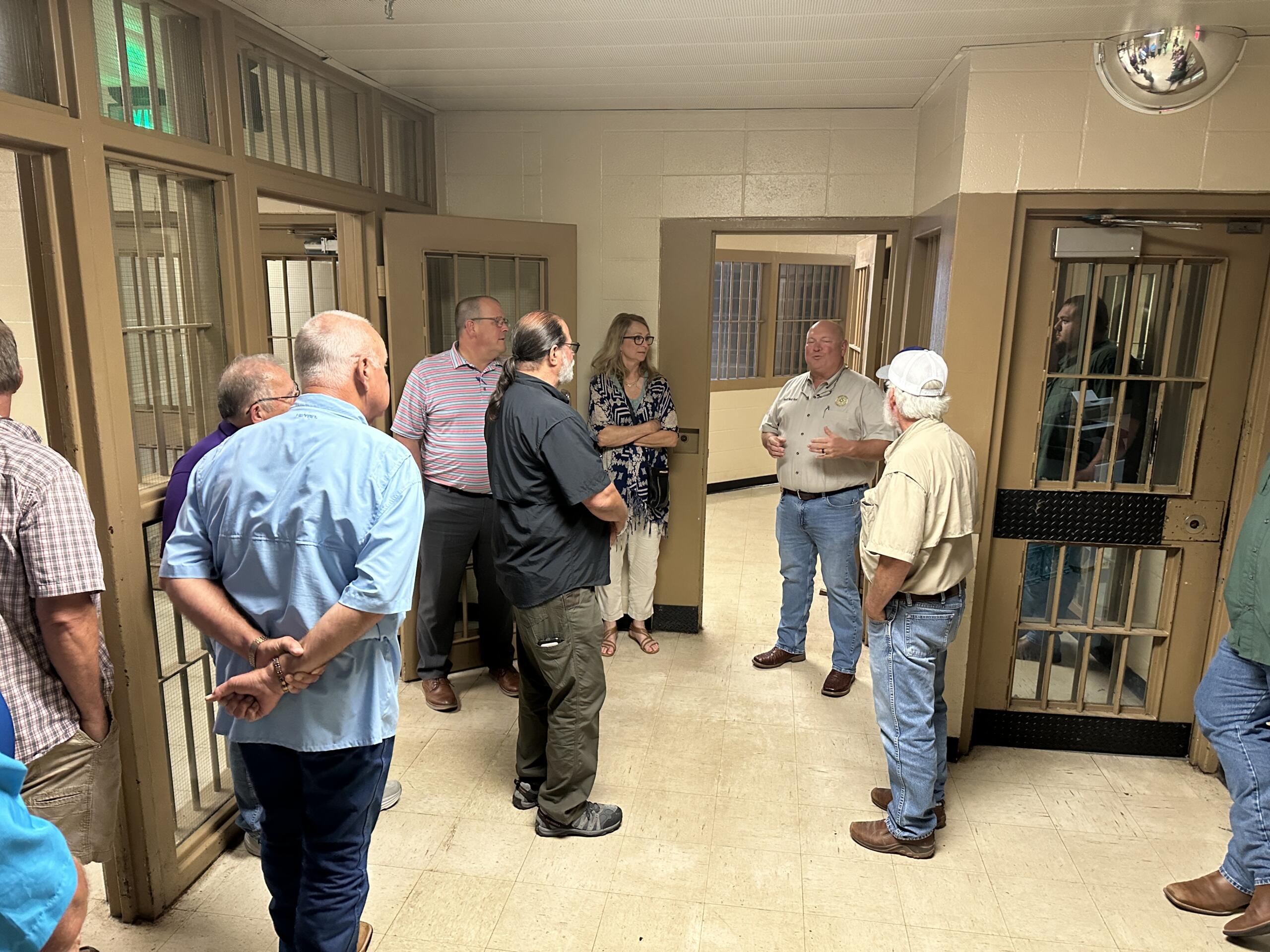 Justices of the Peace attended the tour to see the current condition of the jail and ask questions. They discussed the future needs of the jail facility as well as the Sheriff’s Department.