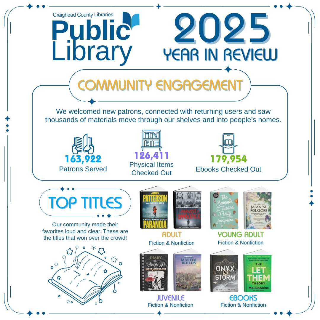 Jonesboro, AR – Contributed – Craighead County Libraries is proud to share its 2025 Year in Review, highlighting a year of strong community engagement, growing readership, and meaningful connections with patrons across the county.