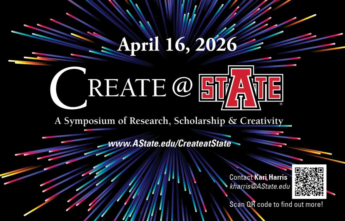 Jonesboro, AR – Contributed – Arkansas State University students will share their research and creative activity through the 16th annual Create@State Symposium, a spring semester tradition at A‑State since 2011.
