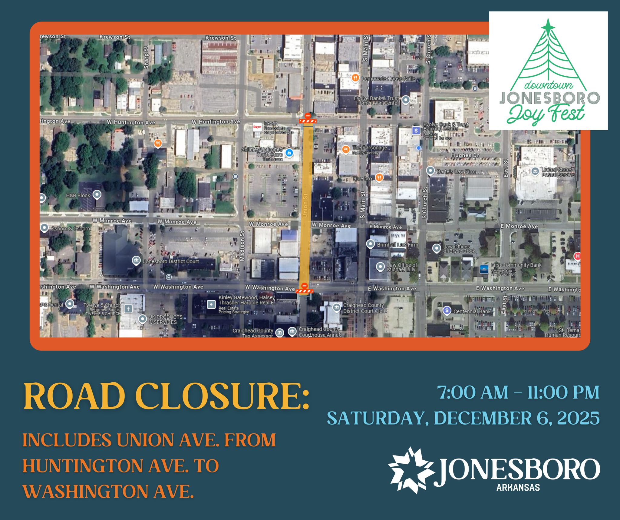 Jonesboro, AR – (JonesboroRightNow.com) – Roads in downtown Jonesboro will be temporarily closed Friday and Saturday for Christmas events.