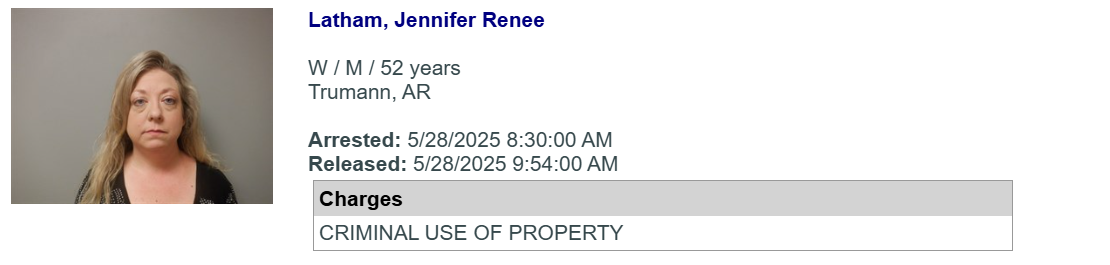 Jonesboro, AR — (JonesboroRightNow.com) — May 28, 2025 — Deputies arrested a Trumann woman after they said she used credit cards from her former employer to pay nearly a million dollars’ worth of utilities and other items for her own business in Jonesboro.