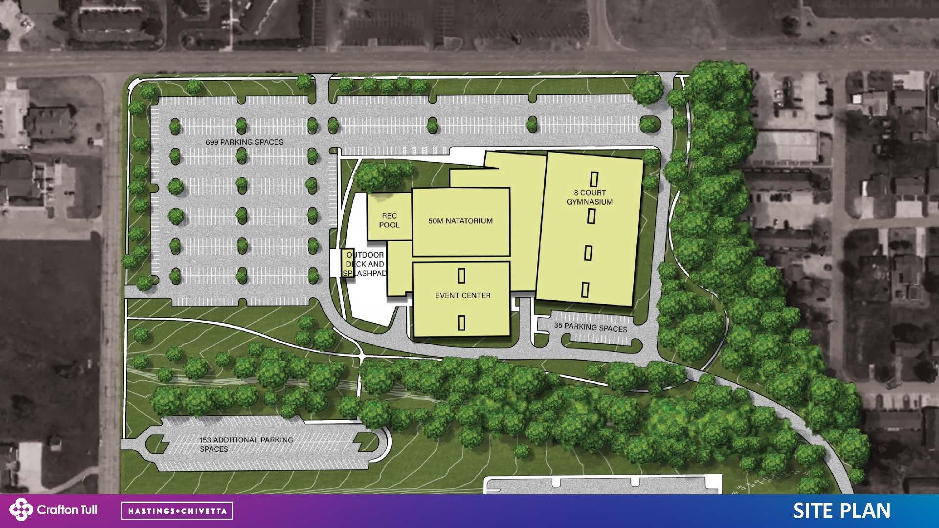 Next steps for the center include traffic studies, GEO Technical studies, construction documents that are expected in June, and final pricing expected in July.