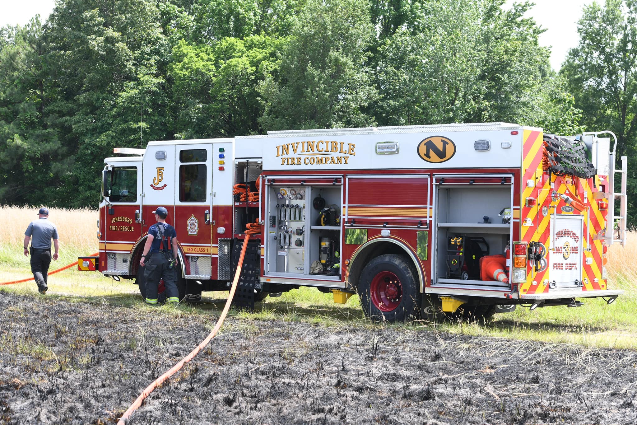 A Facebook post from the Jonesboro Fire Department explained that a grass fire was located off Highway 351 that threatened a house and extended into the adjacent wooded areas. Surrounding fire departments were called for mutual aid and brought tanker trucks and brush units. The fire was extinguished, preventing damage to the abandoned “mini mansion” located on the property.