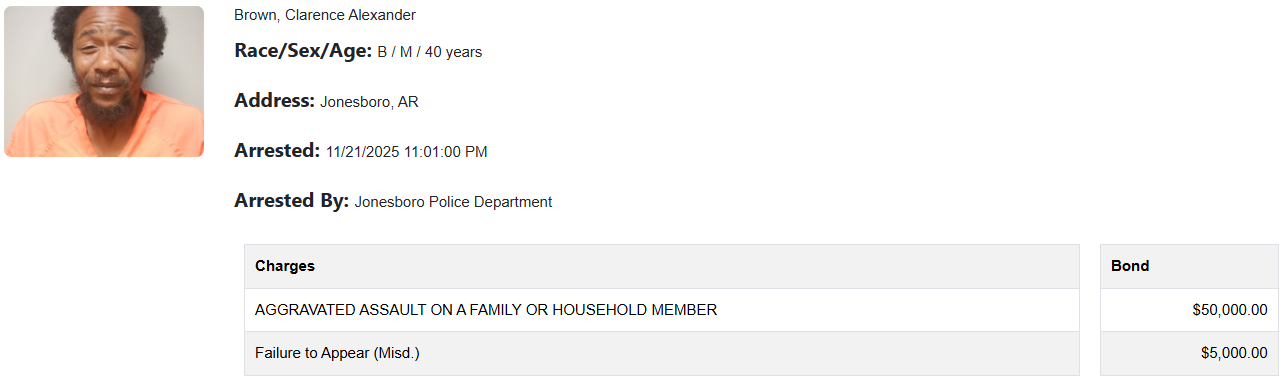 Based on these statements, Brown was arrested and taken to the Craighead County Detention Center, where he is being held on a temporary $50,000 cash/surety bond, as no public defender was present at Monday’s hearing. Fowler also ordered Brown to have no contact with the victim and wear a GPS ankle monitor upon release.