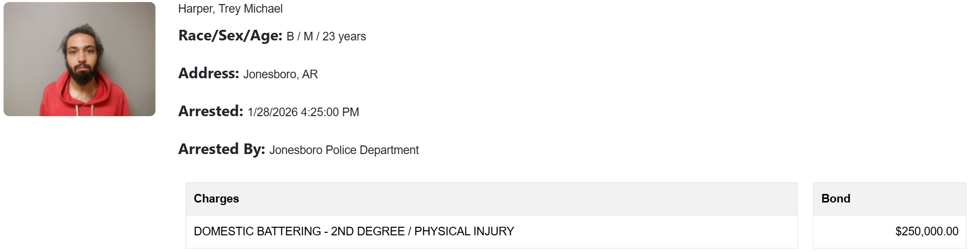Harper was arrested Jan. 28, according to the online jail roster. He appeared before District Judge David Boling on Jan. 30, who found probable cause to charge him with second-degree domestic battering, a class C felony. Harper was also given an order to have no contact with the victims.