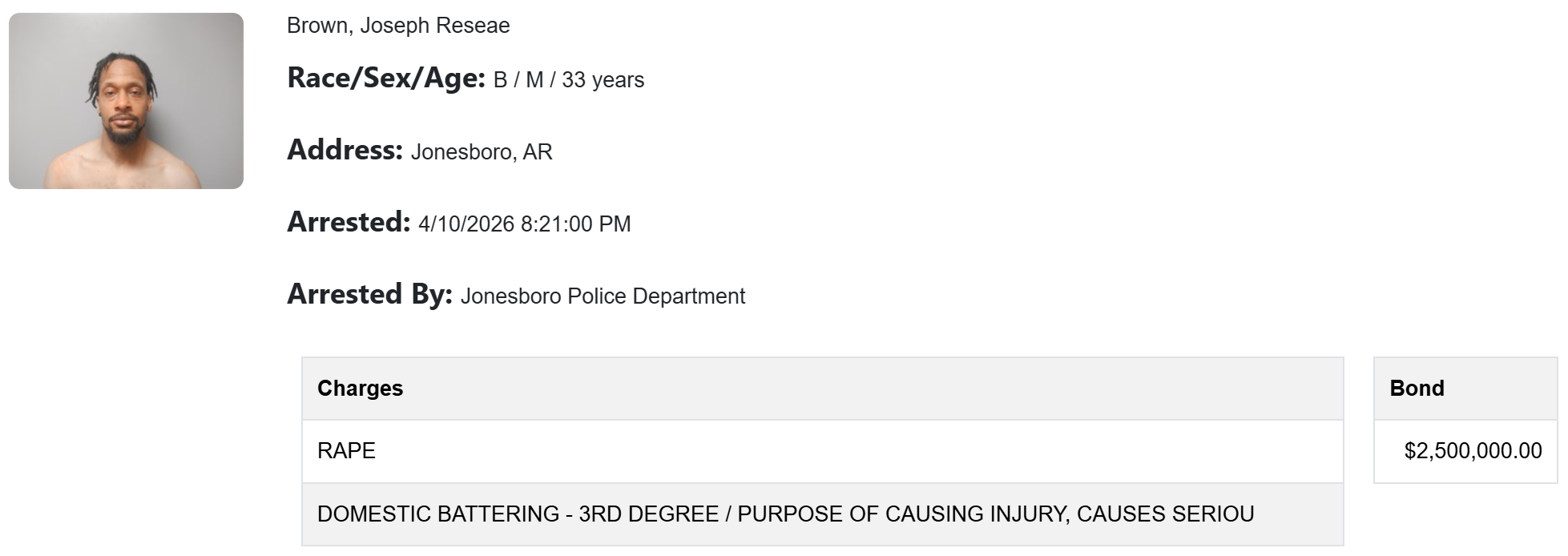 Following his recent arrest, a temporary bond was set on April 12 with a new no-contact order, which Brown refused to sign. During a follow-up interview on April 14, the victim showed officers that Brown had attempted to call her early that morning from the Craighead County Detention Center.