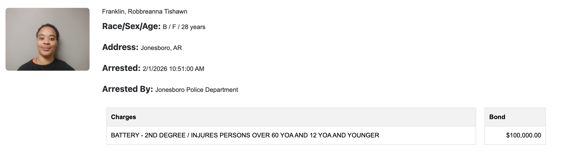 Franklin was booked into the Craighead County Detention Center at 10:51 a.m., according to the online jail roster.