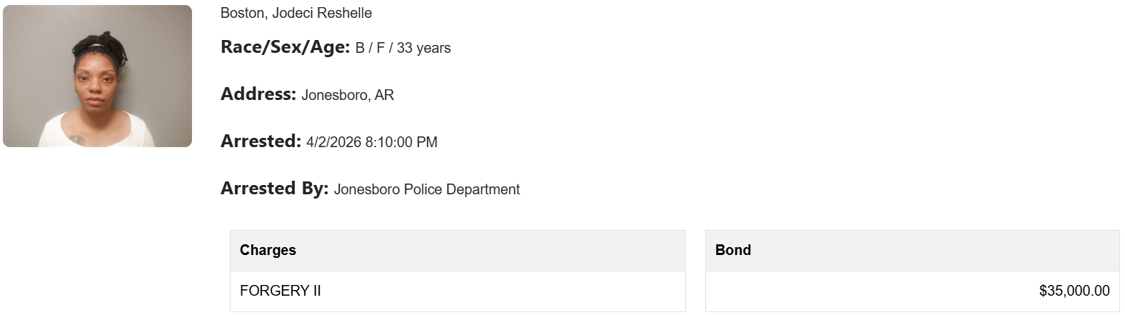 On April 3, District Judge Tommy Fowler found probable cause to charge 33-year-old Jodeci Reshelle Boston with second-degree forgery and theft of property between $5,000 and $25,000. Both charges are Class C felonies.