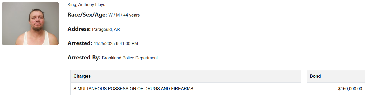 As a result, King was arrested and taken to the Craighead County Detention Center.
