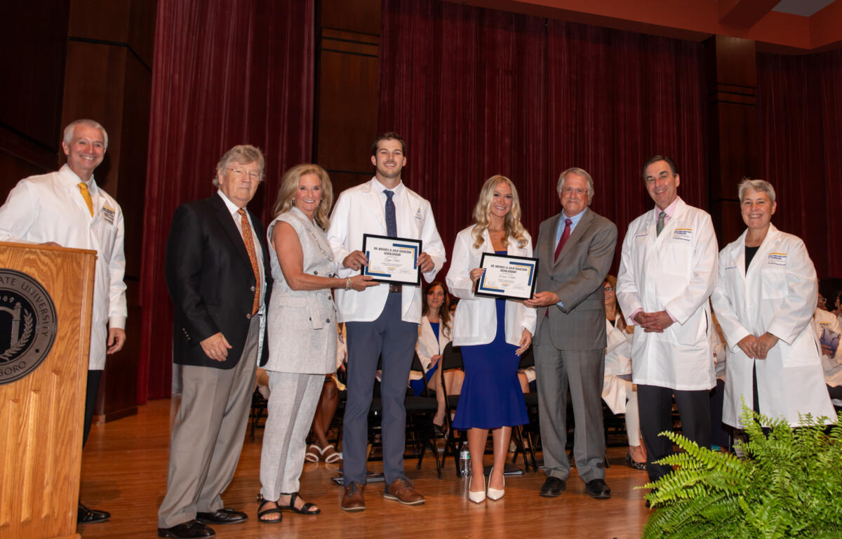Student Doctors Gracie Fulks of Jonesboro and Gage West of Stuttgart were honored as this year’s recipients of the scholarship, which is funded by a gift from the Sidney and Mary Ann Arnold Foundation.