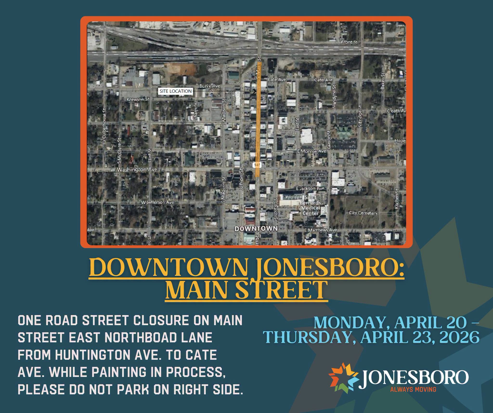 Jonesboro, AR – JonesboroRightNow.com – One lane of Main Street will be closed starting Monday for road painting.