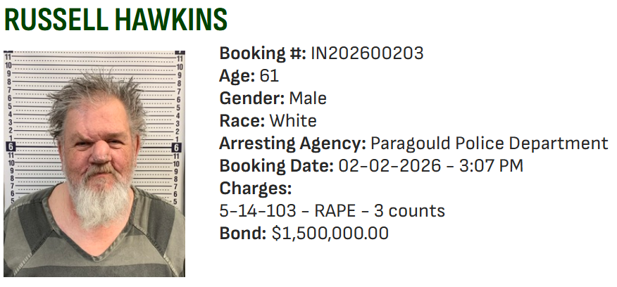 Paragould, AR – JonesboroRightNow.com – A Paragould man is being held on a $1.5 million bond after authorities said a lengthy investigation revealed he had raped a child multiple times.