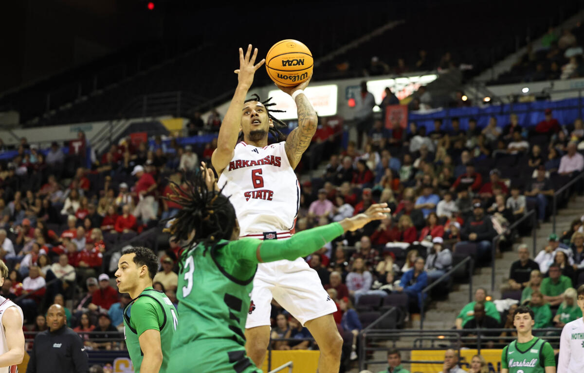 Pensacola, FL – (Contributed) – March 8, 2025 – Arkansas State men’s basketball advanced to the semifinal round of the Sun Belt Conference Championship on Saturday, topping Marshall 77-74 in the quarterfinals inside the Pensacola Bay Center.