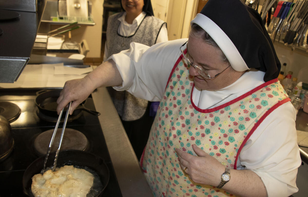 Mother Mary Clare baking in the convent’s kitchen. (Courtesy of St. Bernards)