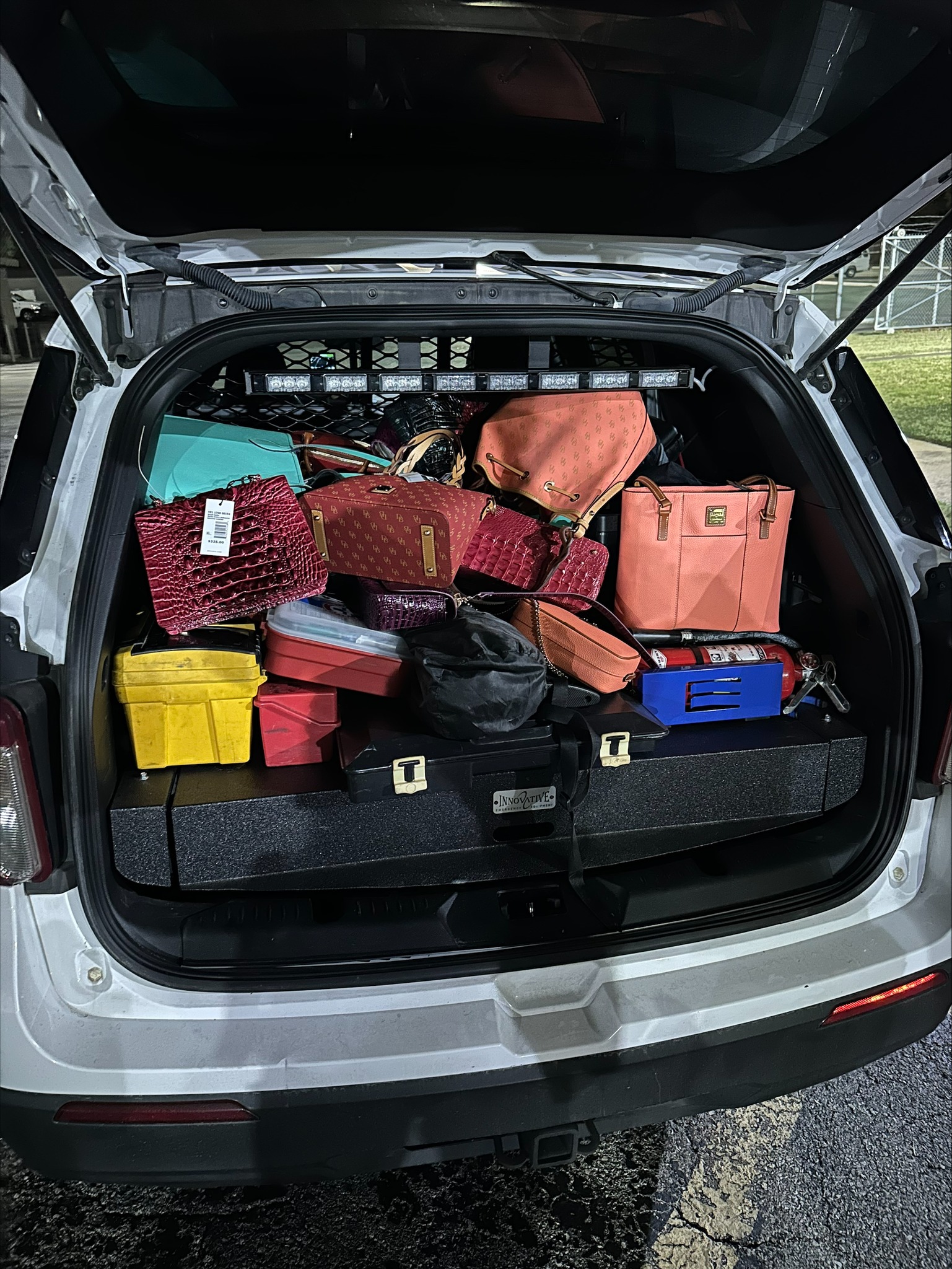 Officers arrived at the business and reviewed security footage of the incident. They saw a male suspect standing near the purse section. He could be seen on video removing security tags from the purses and walking out of the store with the items. Another male suspect walked out of the store behind him, carrying a large amount of clothing.