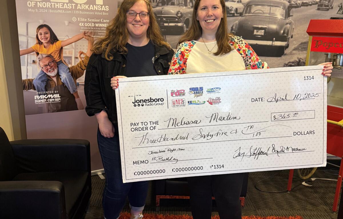 Jonesboro, AR — (JonesboroRightNow.com) — April 10, 2025 — Melissa Martin has been named the winner of the Jonesboro Right Now Birthday Celebration giveaway.