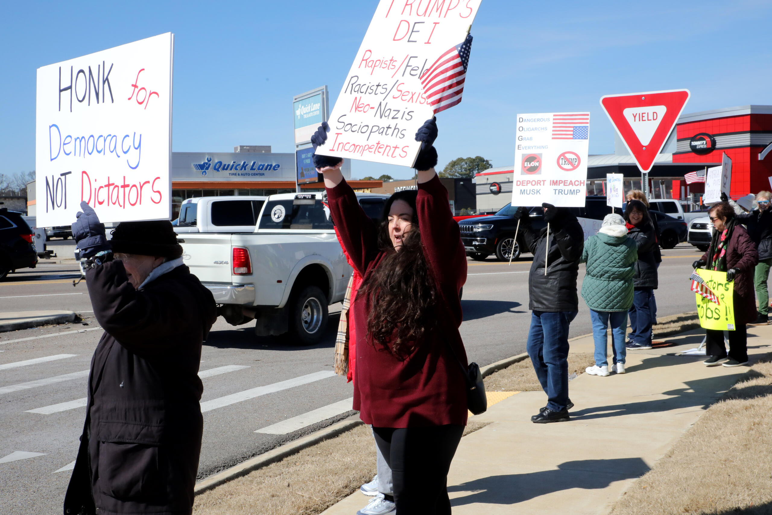 Rebecca Roberts, a protestor and president of the Northeast Arkansas Young Democrats, said Musk’s involvement in the government was “disturbing.”