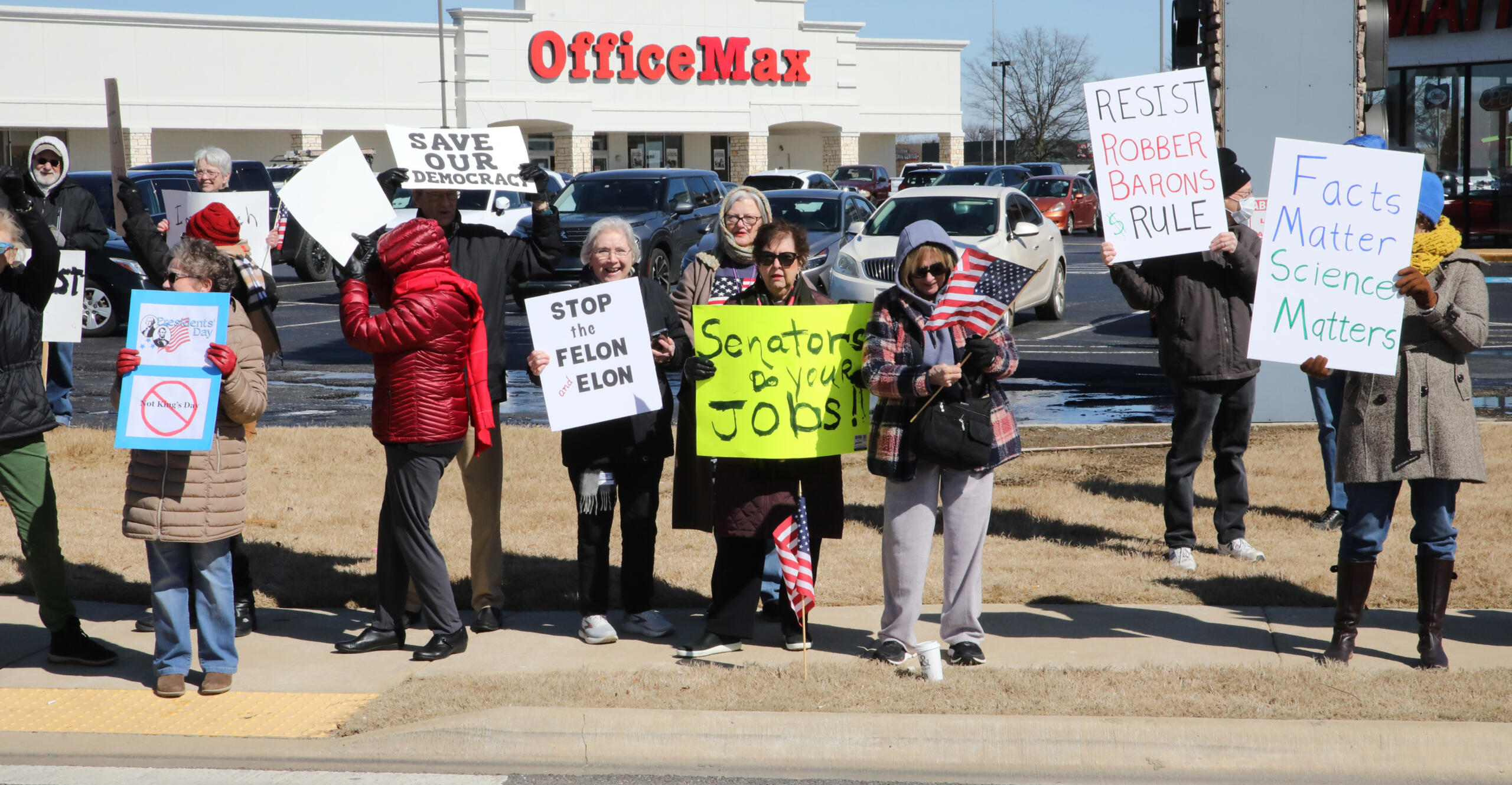 Hosted by the Democratic Party of Craighead County (DPCC), many protestors said they were unhappy with Trump’s recent executive orders, which aim to lay off hundreds of federal employees, begin mass deportations of undocumented immigrants, implement new tariffs and more.