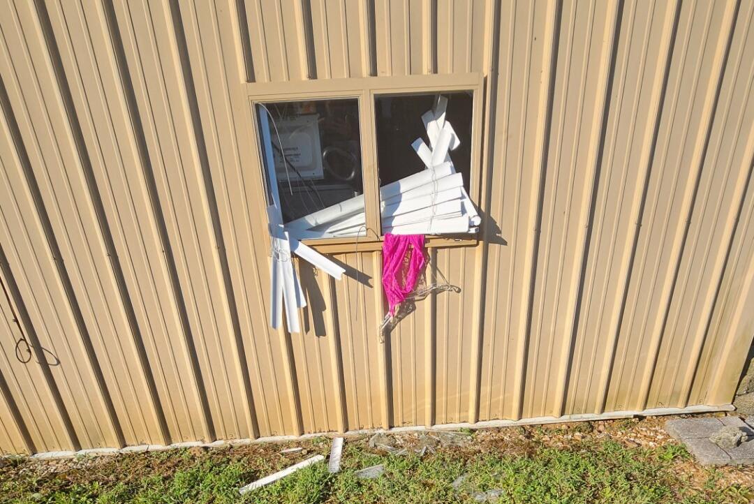 In a case of late-night funny business, authorities discovered that a window on the north side of the building had been penetrated.
