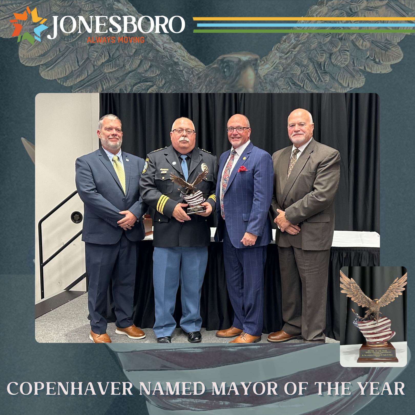 Jonesboro Mayor Harold Copenhaver has been named the 2024 Mayor of the Year by the Arkansas Association of Chiefs of Police.