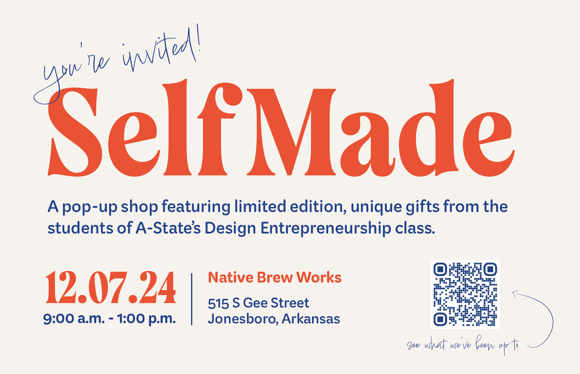 The students of A-State’s Design Entrepreneurship class will host an exclusive pop-up shop at Native Brew Works at 515 S Gee St. on Saturday, Dec. 7, from 9 a.m. to 1 p.m.