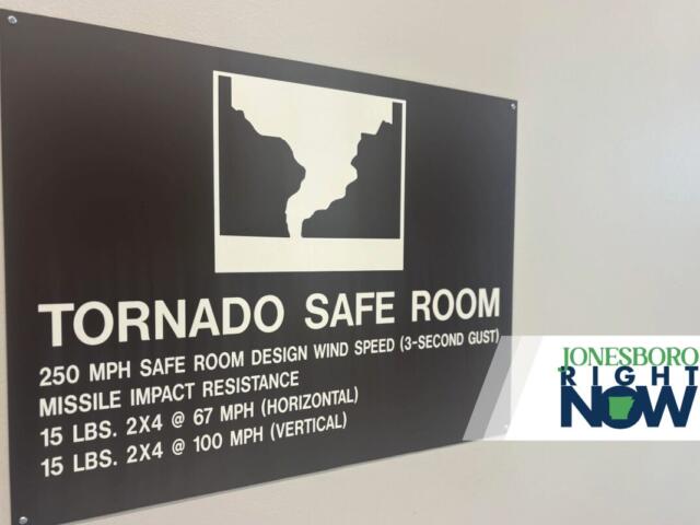 Mugshot-style photo of a man with a beard in a red shirt, facing the camera against a gray wall; a Jonesboro Right Now logo/banner overlaps the top-left corner.